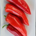 Nouvelle variété à gros fruits cornus et allongés, à chair très douce et très fruitée. Saveur exceptionnelle pour ce type de poivron de 18 à 24 cm de long, verts devenant rouges à maturité.